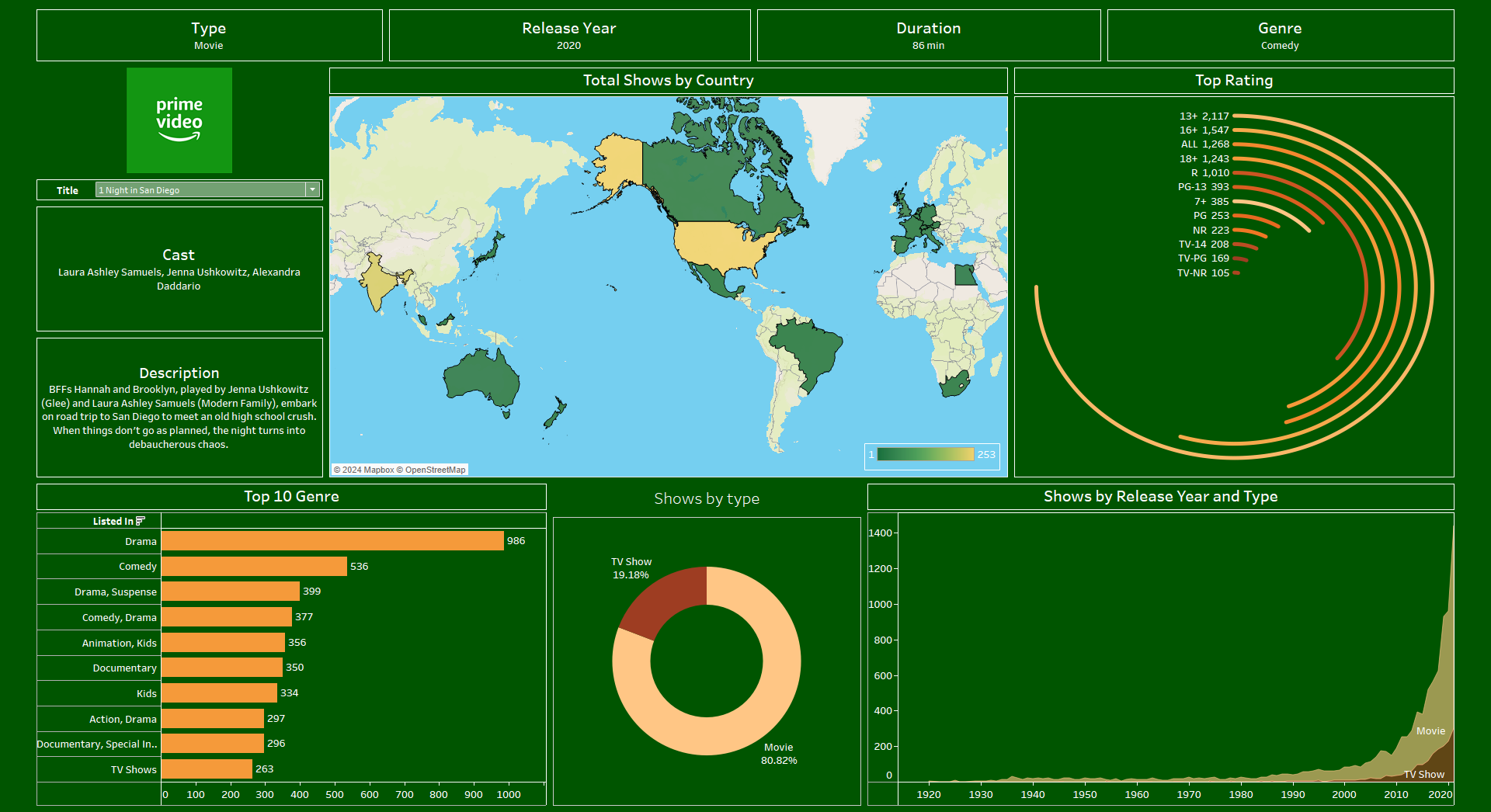 An attempt has been made to Read more...solely describe the internal data of available movies and series on Amazon Prime, without any analysis