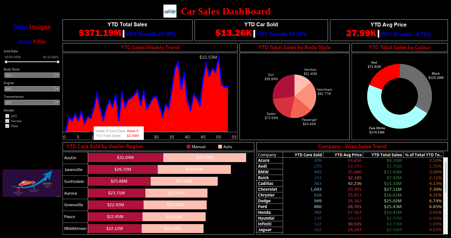 A dashboard depicting car Read more...sales in the automobile industry for the years 2020-2021 has been created, focusing on showcasing brand